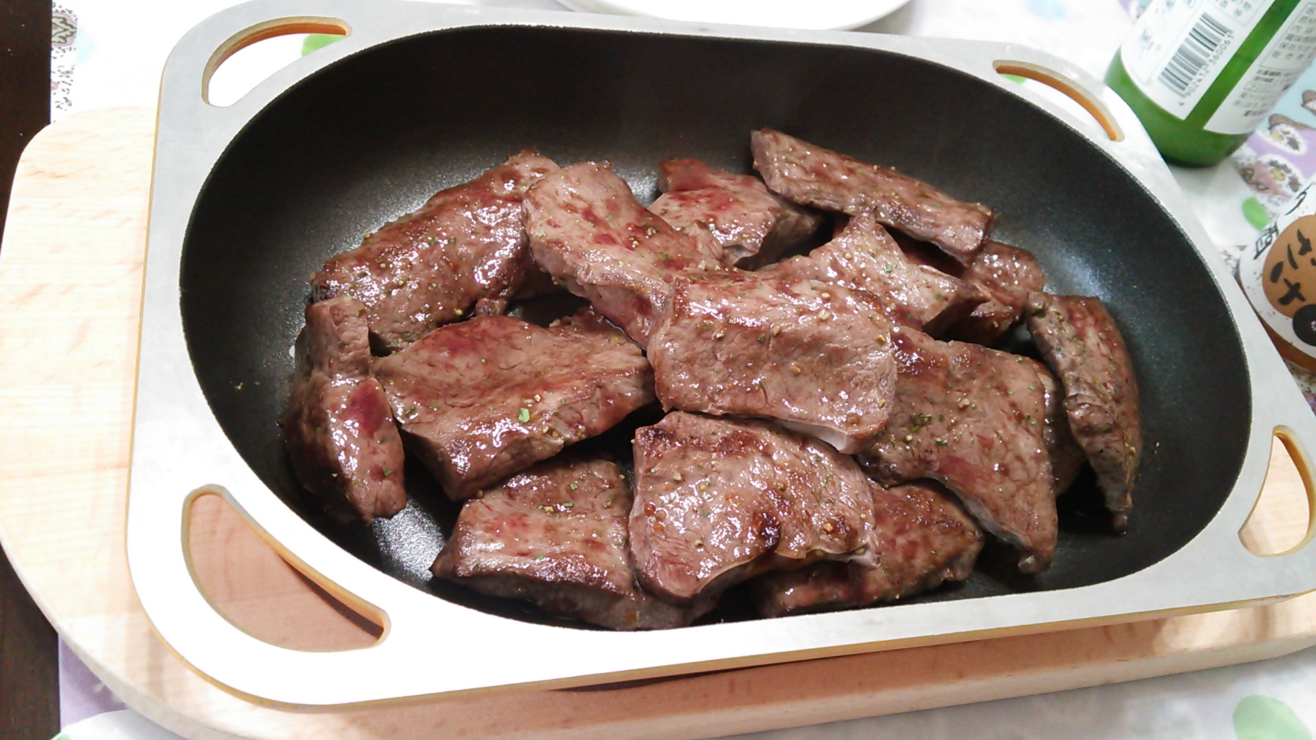 今夜は珍しく買ってみた牛ハツのローストとブロッコリーとキャベツの煮込み。