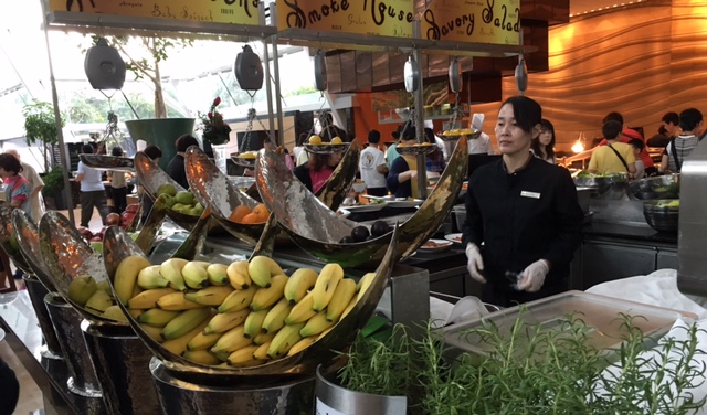 焼きたてのベーカリーや色とりどりのトロピカルフルーツ、シェフに具材や焼き方を選んでオーダーするオムレツなど、選ぶのを迷ってしまいます。