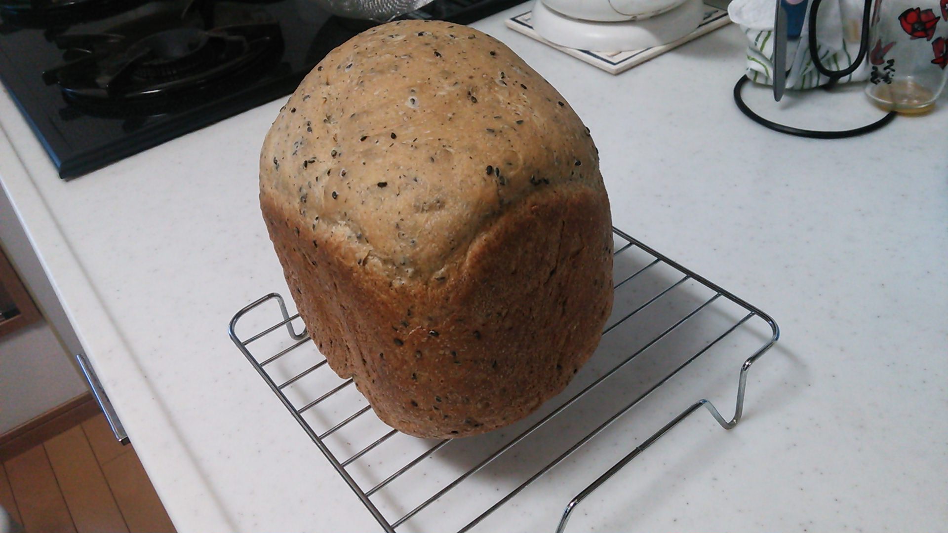 今朝は黒ごまパン。自家製の良い点は、好きなものを好きなだけ投入出来るところですね。