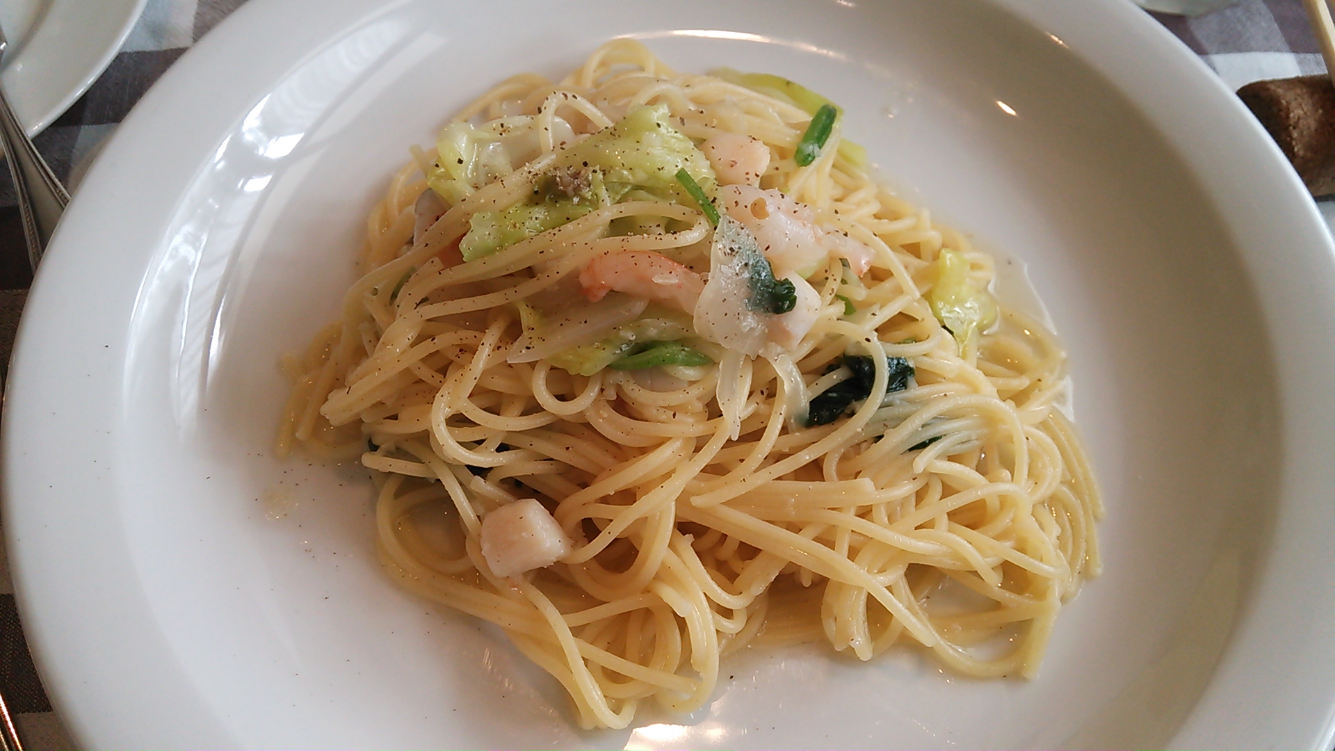 私のは魚介のオイルパスタ…