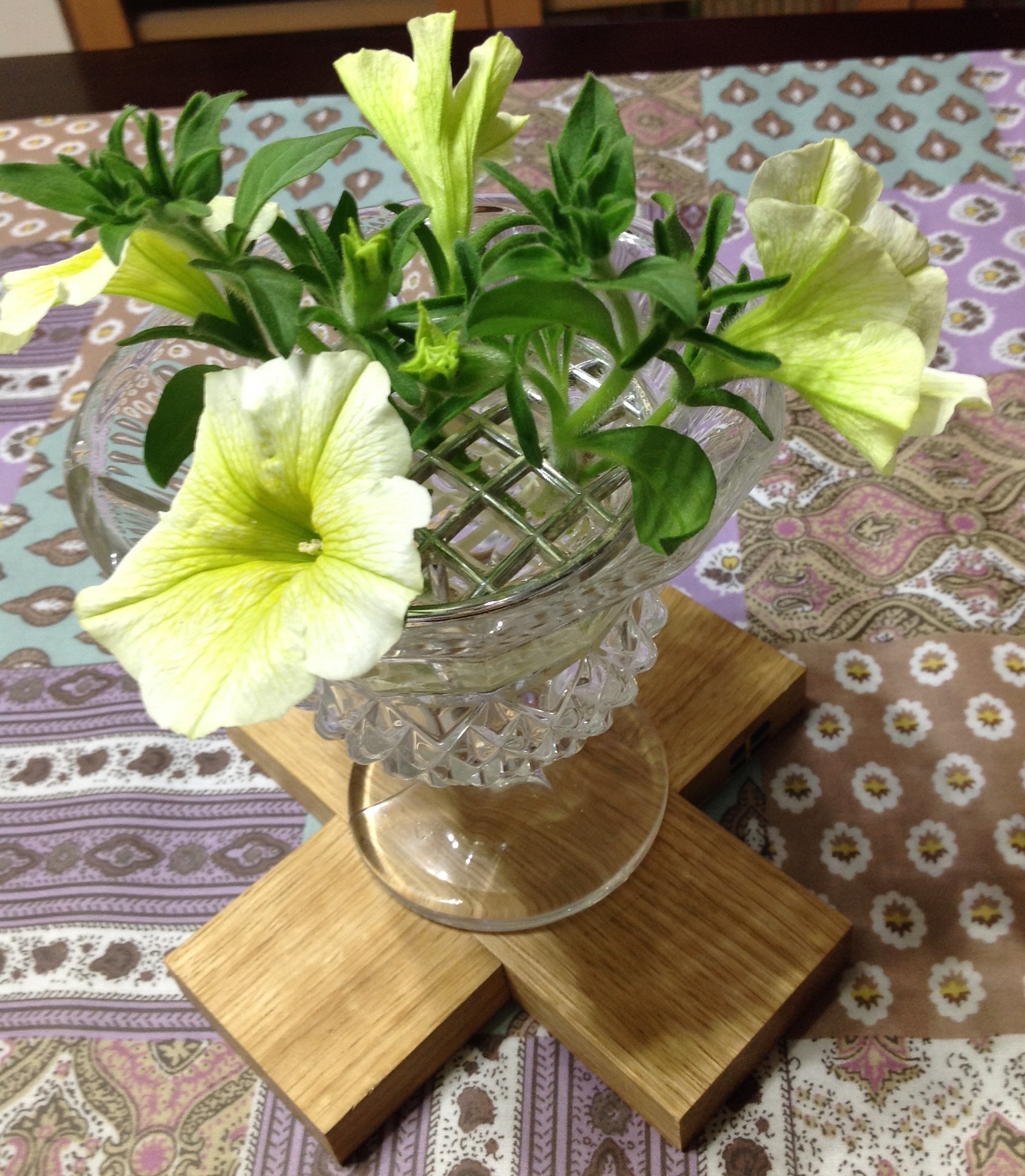 切り落としたのは今を盛りと咲いているところですので、花器に移して楽しませてもらいます。
