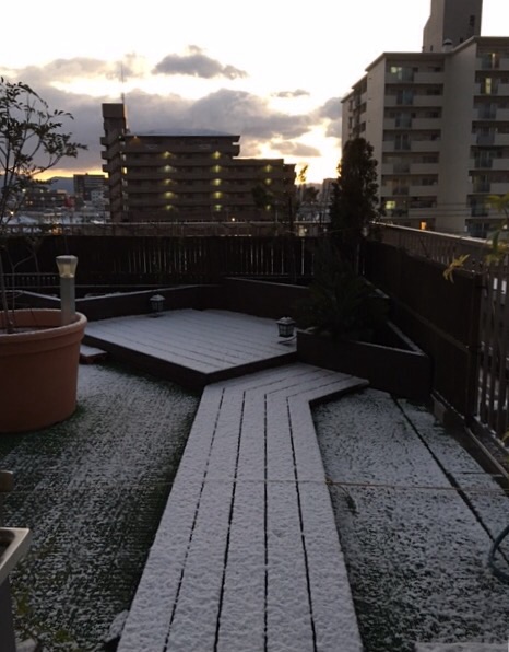 この後、博多に一泊してあしたの朝イチで福岡空港に向かいます。雪はまだちらついていました。