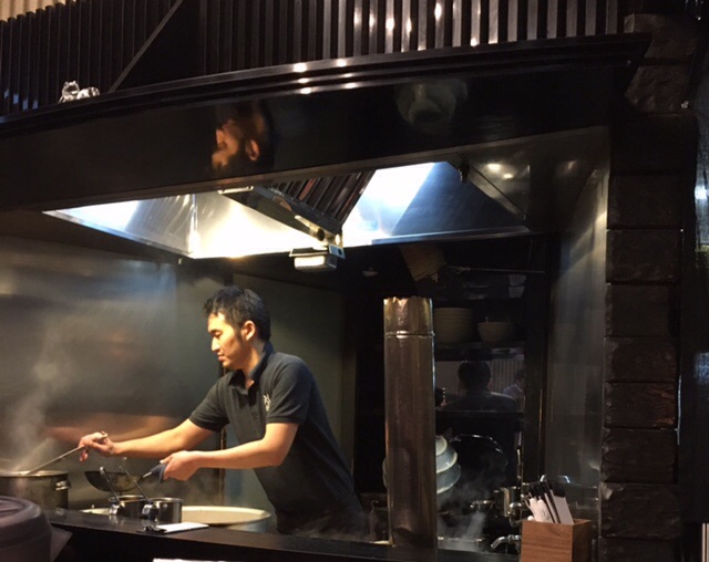 入ってみると、なるほど、厨房を見下ろす形でまるで客席のようなテーブルの配置が、確かに劇場風。