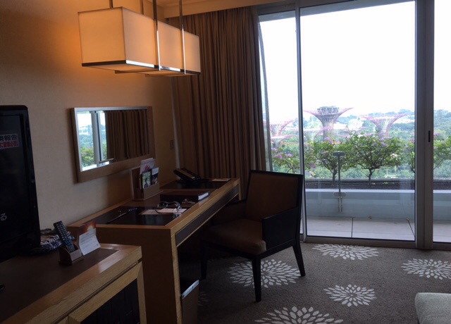 部屋の窓からは、近未来的な外観の植物園 『 ガーデンズ バイ ザ ベイ 』 が一望できます。