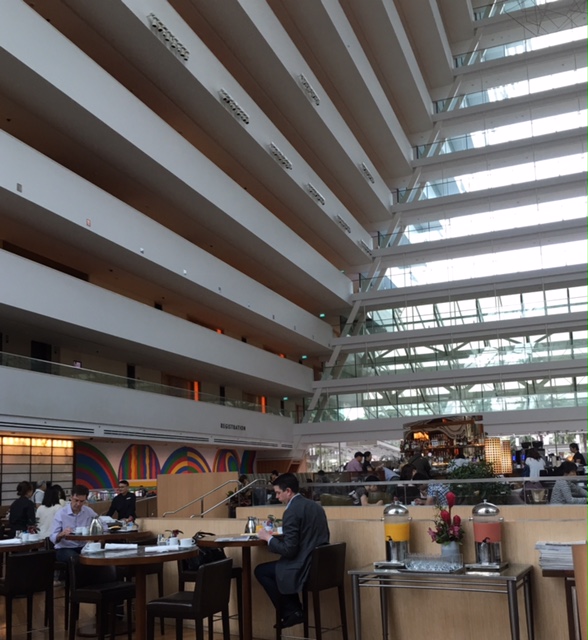 ロビーはものすごい人の数。様々な言語が飛び交っています。