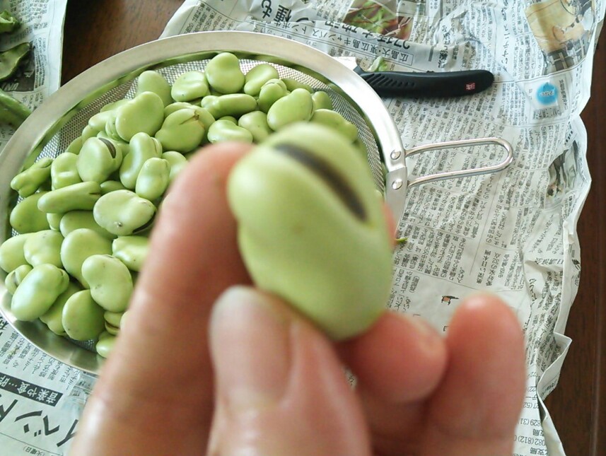 鮮度が命のそらまめ、急いでむいて、鍋に投入!