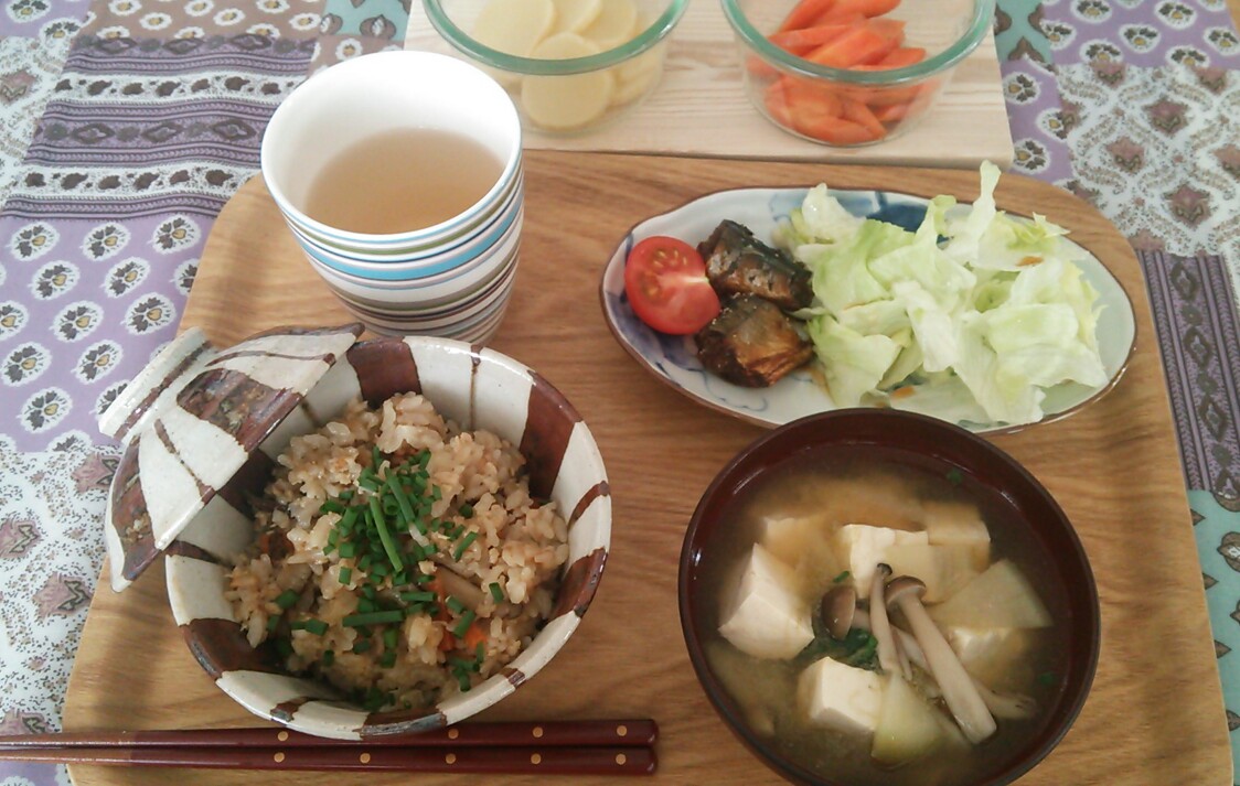 今朝は鶏そぼろとゴボウの炊き込みごはん。