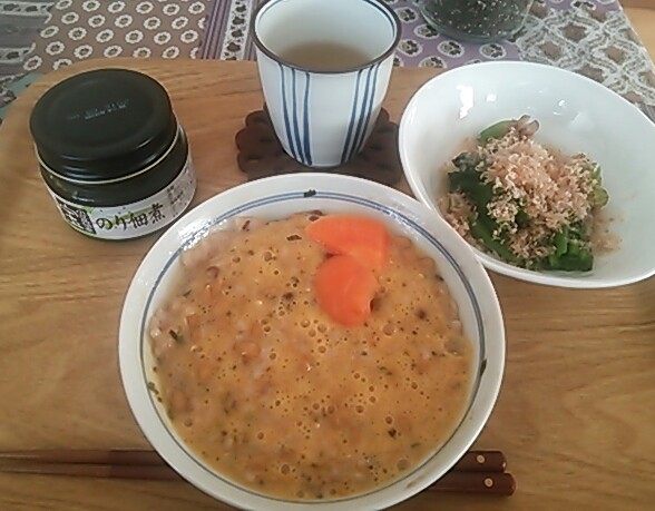 おうちごはん、朝はたまご納豆ごはん。