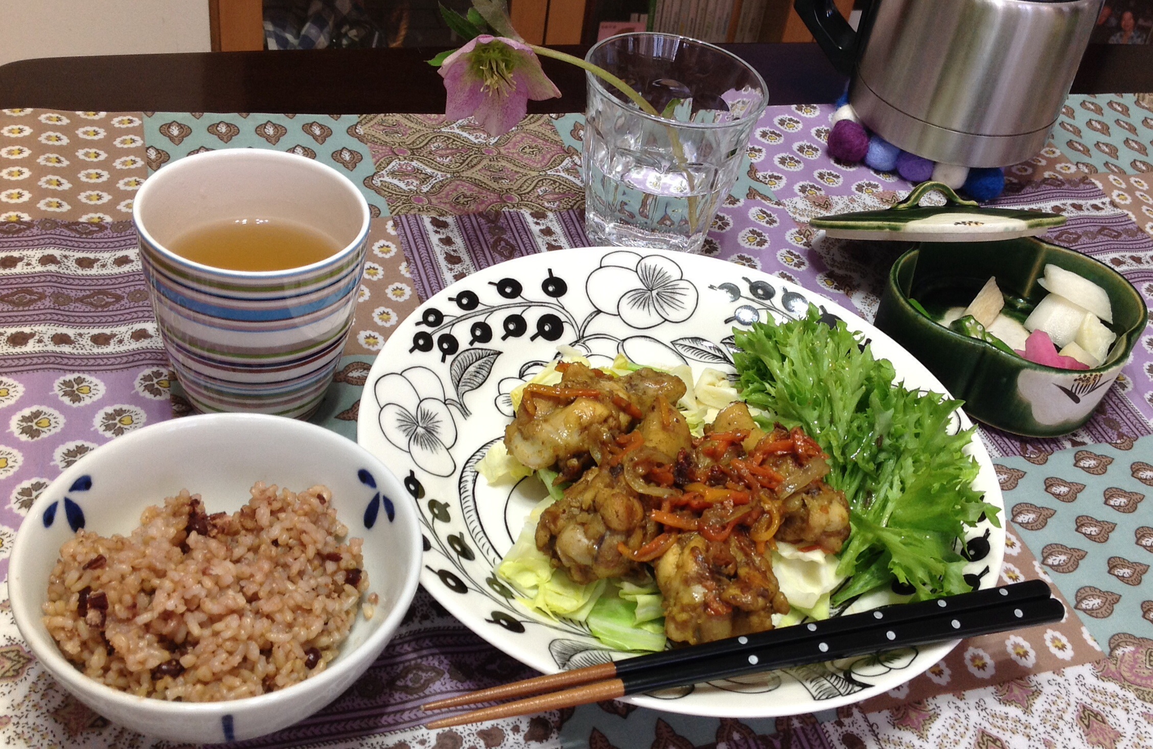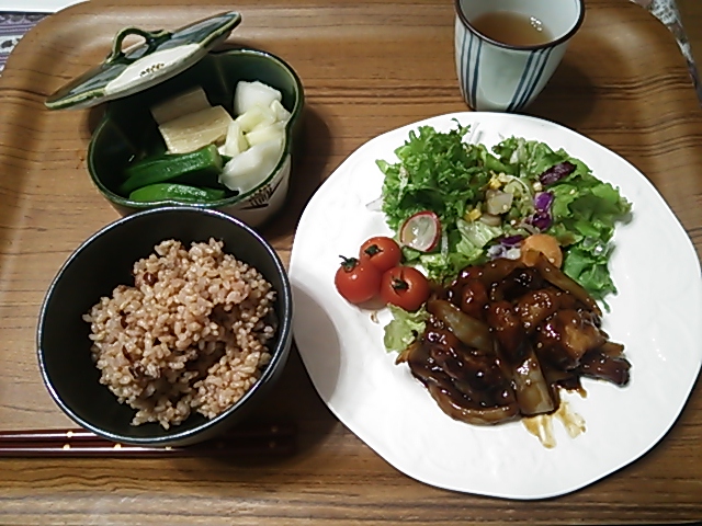 夜は手羽元の照り焼きカレー風味。