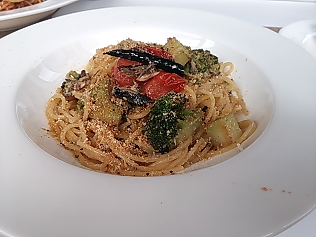 私はアンチョビのオイルパスタで主人はキノコのトマトパスタをチョイス。