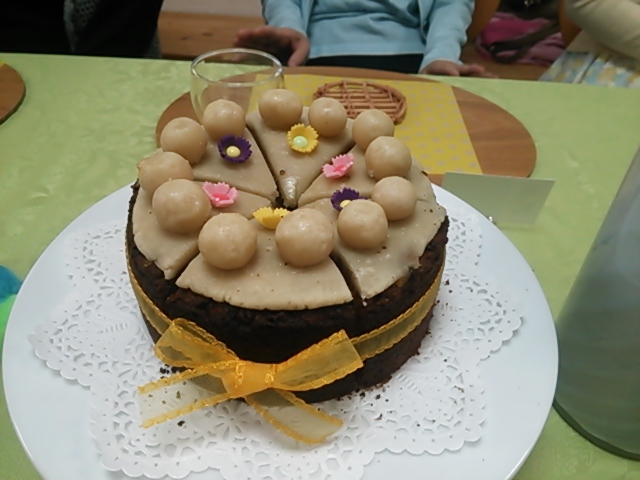 上に乗っているのがマジパンのボール。11個乗せるのがお約束とのこと。さらに真ん中に大きいボールを配置することもあるそうです。