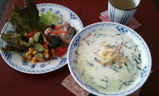 生姜ミルク茶漬けです。リゾット風で寒い朝に温まります♪簡単だし。レシピは番組ホームページのアーカイブをご覧下さい。