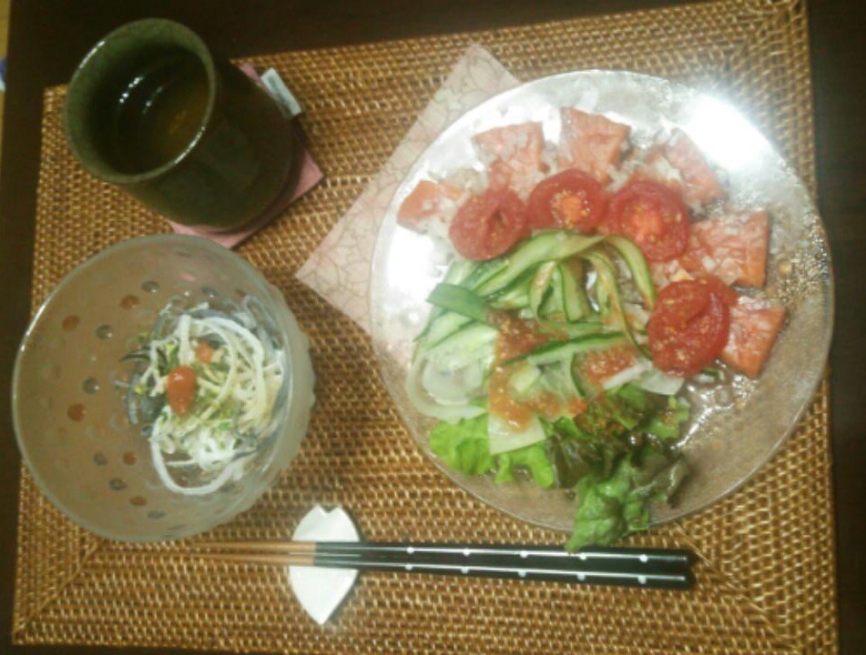晩ごはんは蒸し野菜とホタテの刺身。