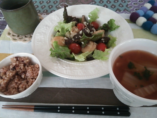 お昼は柔らかくもどした干しシイタケとホタテを蒸し焼きにしてマリネに。