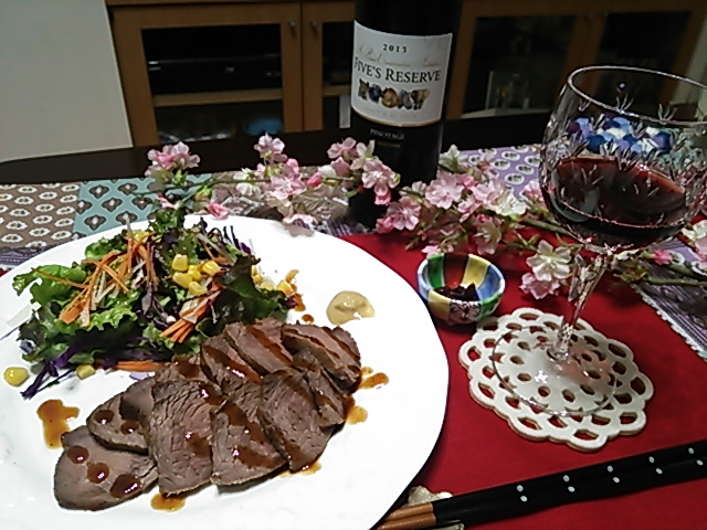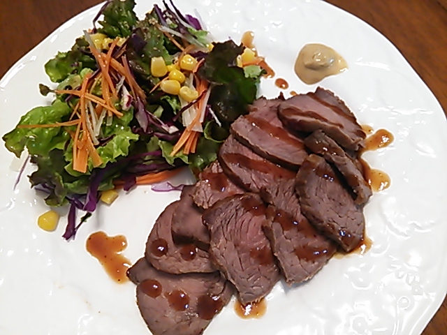 晩ごはんはローストビーフを。保温モードで20分位で出来ました。