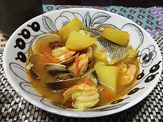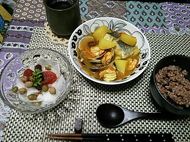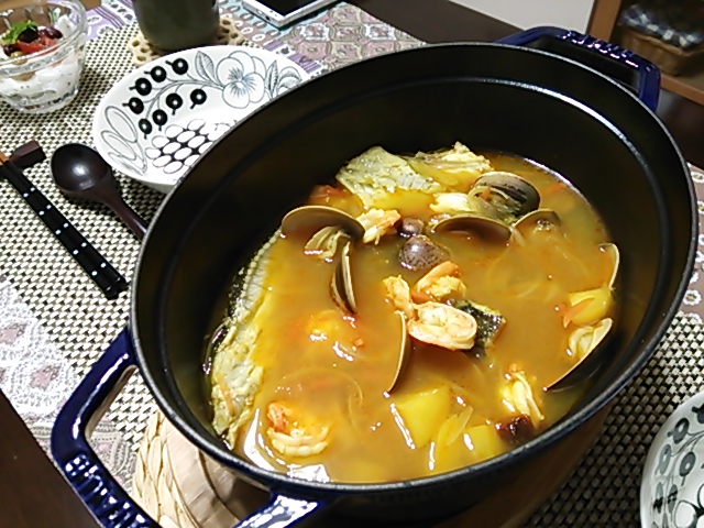 ストウブのお鍋でコトコトと煮込んで魚介の滋味を堪能しました。