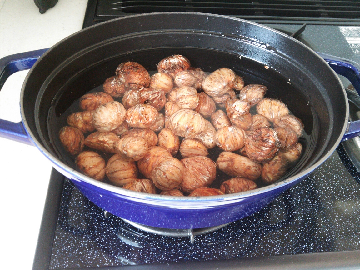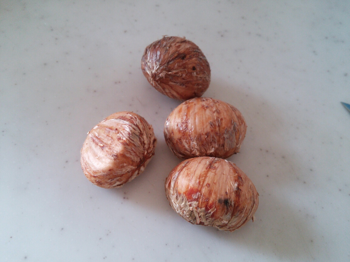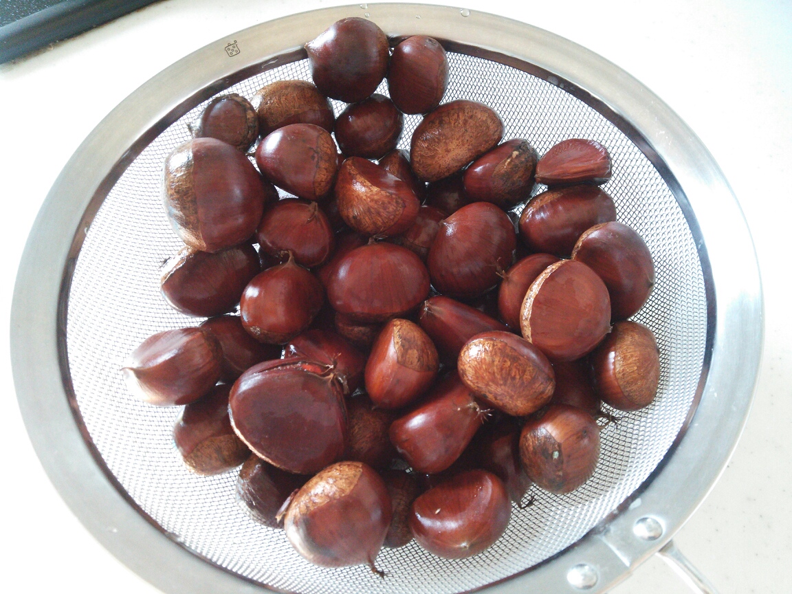 栗を一晩水に浸けたあと、ひとつずつ皮を剥きます。