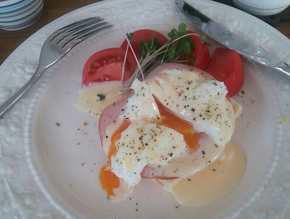 朝ごはんにエッグベネディクト。