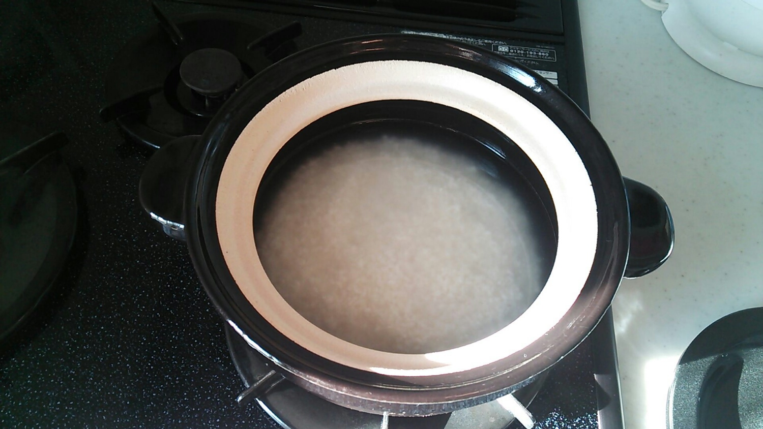 お粥炊きをすることで、お米のでんぷん質が土鍋の細かい気孔を埋め、水漏れを防ぐ効果があるそうです。