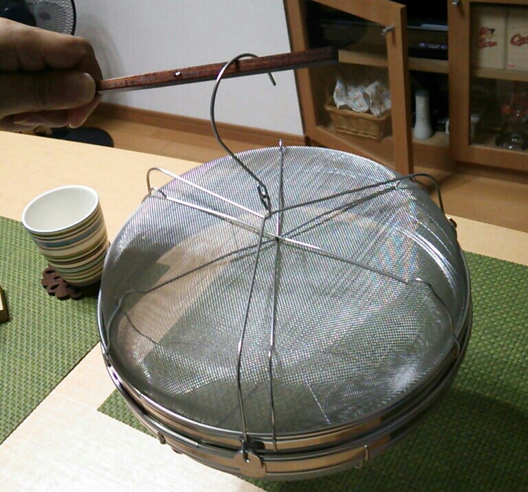 実は干し野菜を作る為のザルなのです。中に野菜を入れて軒下などにぶら下げます。
