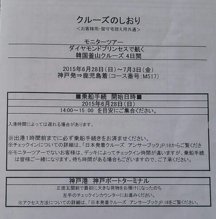 一足早く春先に募集があった船旅に申し込んでいたのですが…